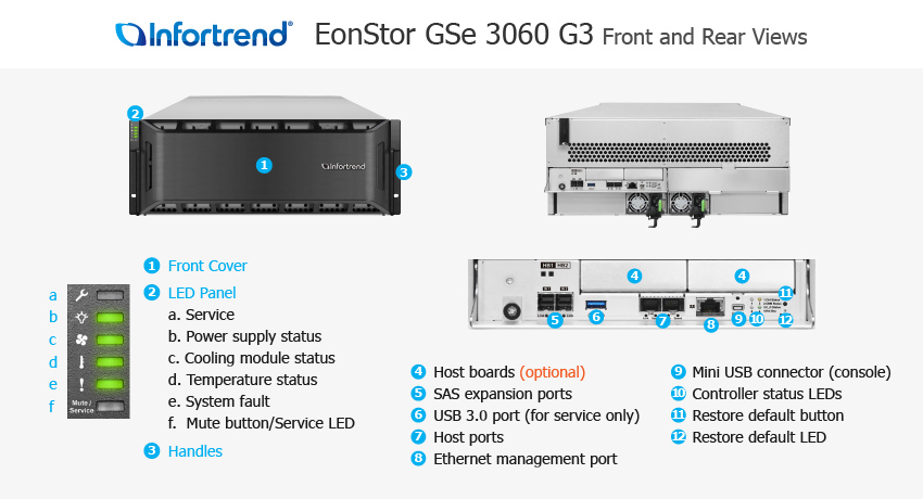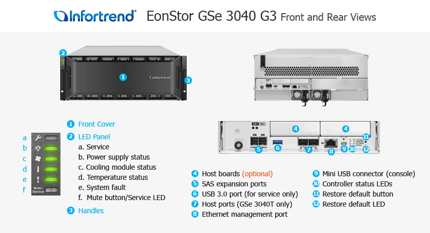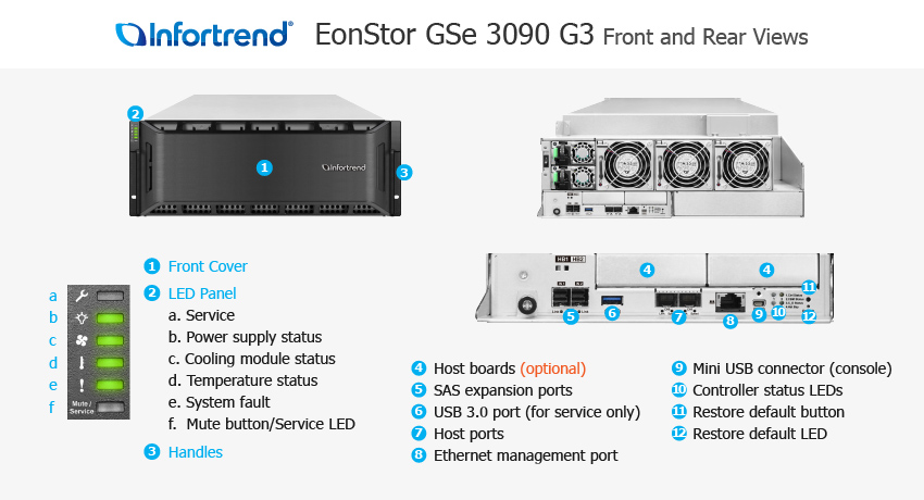 EonStor GSe 3000 G3は、一般的な中小企業向けアプリケーションとメディア業務向けのコスト効率の良いユニファイド共有ストレージソリューションです。オールフラッシュまたはハイブリッド構成では、協調して超高精度メディア編集業務を行える高性能を提供します。また、将来のデータ増加に備えて、スケールアウトによる拡張をサポートしています。