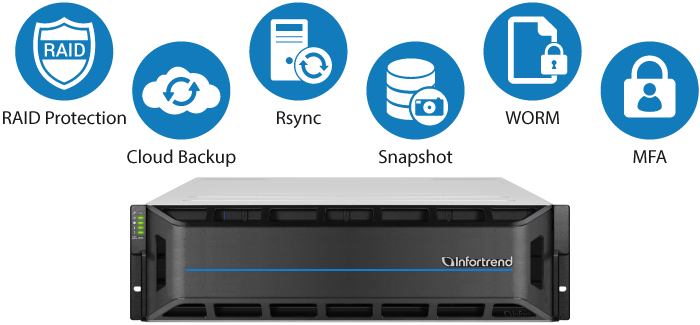 Семейство GSe Pro поставляется с собственной архитектурой RAID Infortrend и надежными службами данных, разработанными для системы SAN, что ускоряет доступ к данным на уровне блоков и их хранение.